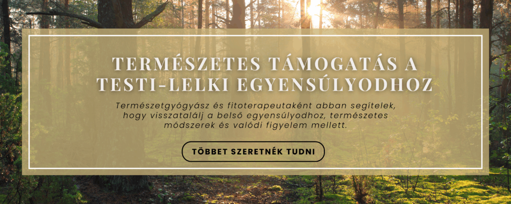 Egyéni fitoterápiás és gyógynövényes tanácsadás testi-lelki egyensúlyod támogatásáért. Segítek eligazodni a természetes megoldások világában, ha életmódváltásra, stresszkezelésre vagy preventív egészségmegőrzésre keresel támogatást.